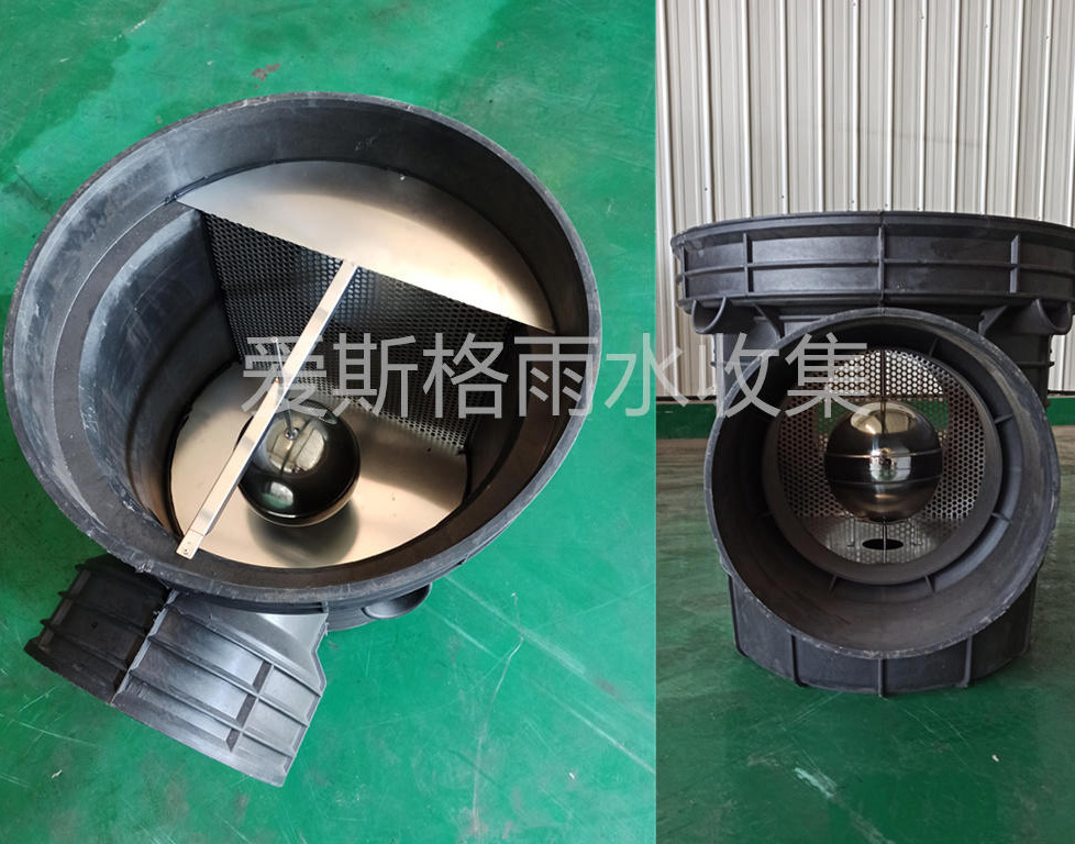 産品内置不鏽鋼擋闆、控制彈簧、關閉控制球,擋闆可以感應過來的雨水流量,當達到設定的降雨流量時,排污口自動關閉,停止排污,進行雨水收集。